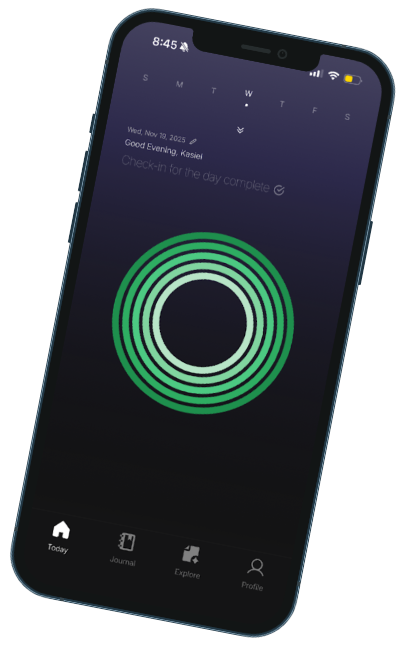 Reflect on your sleep, mood, stress, nutrition, and movement in under a minute simple, intuitive, and built for your busy lifestyle.